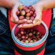 Ved å ha bærebøtta plassert i et belte rundt kroppen får du begge hendene fri til å plukke bær, sopp og frukt. Du slipper å holde og bære noe i hånden, noe som er praktisk når du går mellom blåbærrisen og når du står på trappa ved frukttreet.