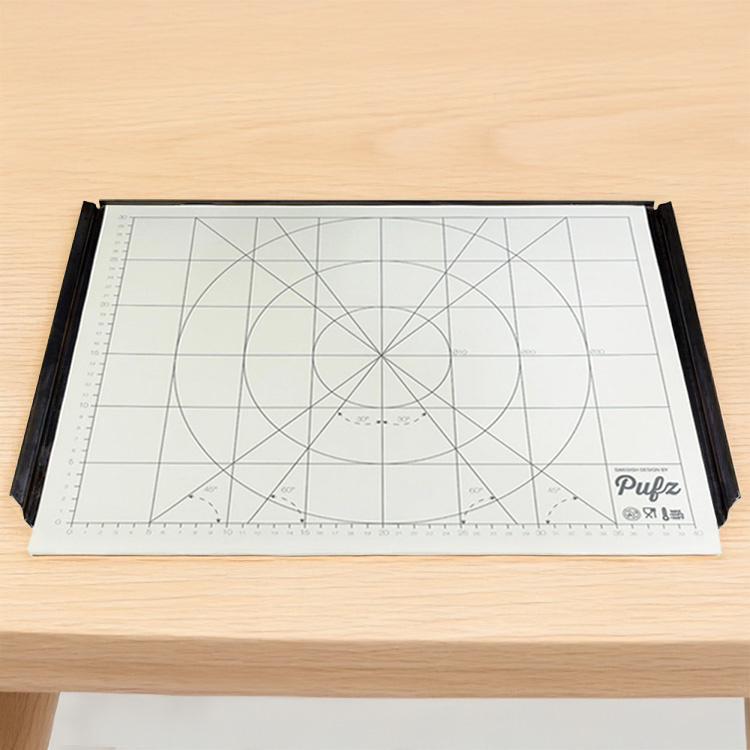 Bolledeig, kakedeig og marsipan løsner lett fra bakematten og de smarte graderingene i mønsteret gjør det også lettere å kjevle ut kakelokk og andre typer deig. Silikonets naturlige friksjon hjelper også på at bakematten ligger stille på bordet.