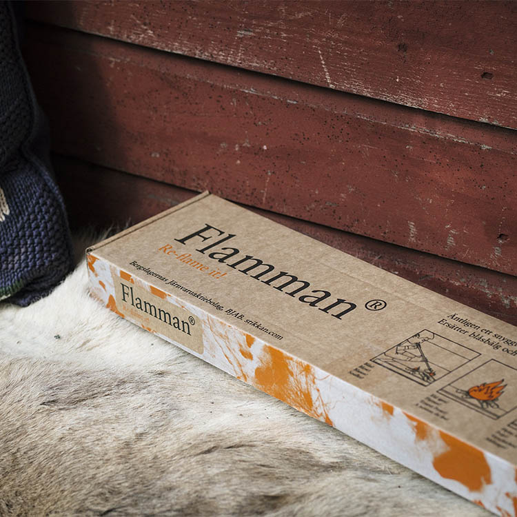 Flamman er utviklet i Sverige, og det lange blåserøret har vitenskapelig framstilte dimensjoner som maksimerer kraften i luftstrømmen når du blåser. Det lange røret gjør at du kan komme nær ilden, og reduserer risikoen for at asken skal sveve rundt. Luftstrømmen får effektivt liv i ilden og er utmerket å bruke både i den åpne peisen og i kjelen for å raskt gi ilden nytt liv.