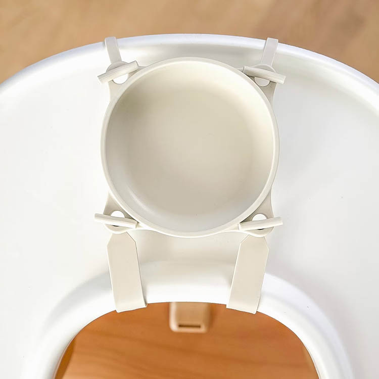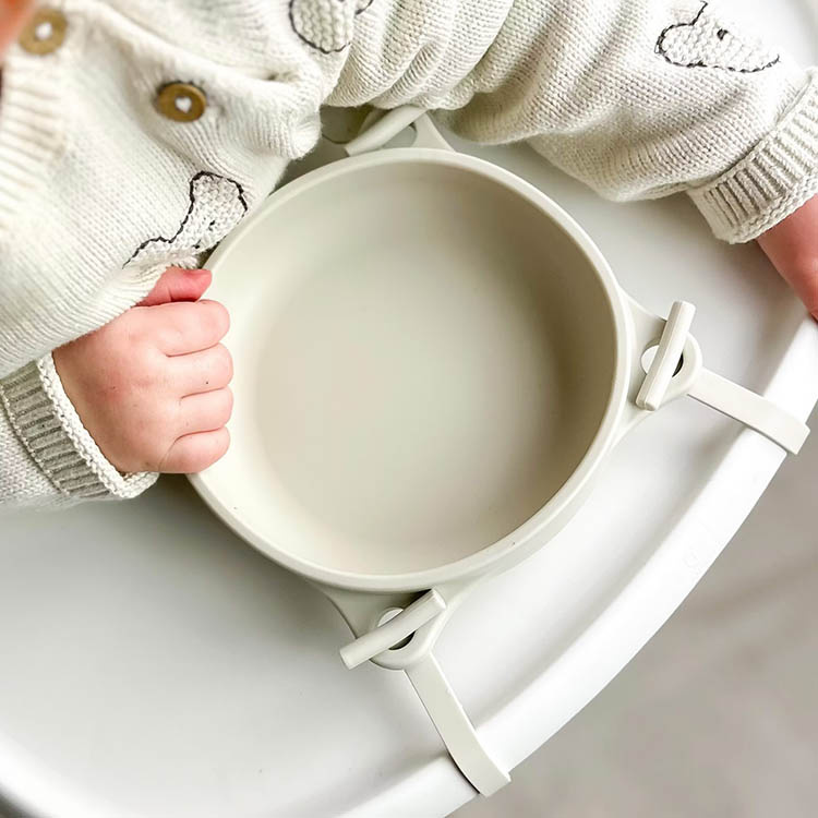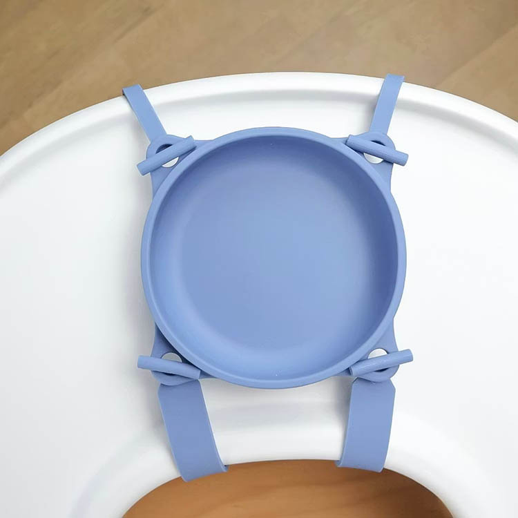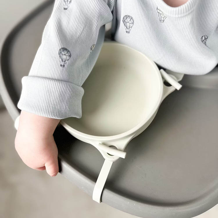 Barneskålen er utstyrt med en kraftig sugepropp i bunnen som bidrar til å holde skålen stødig på plass. Sammen med de fire festemekanismene og de medfølgende båndene får skålen ekstra stabilitet under måltidet. Kombinasjonen gjør at skålen sitter sikkert fast og ikke kan løftes bort av barnet.Perfekt for barn som lærer seg å spise selv