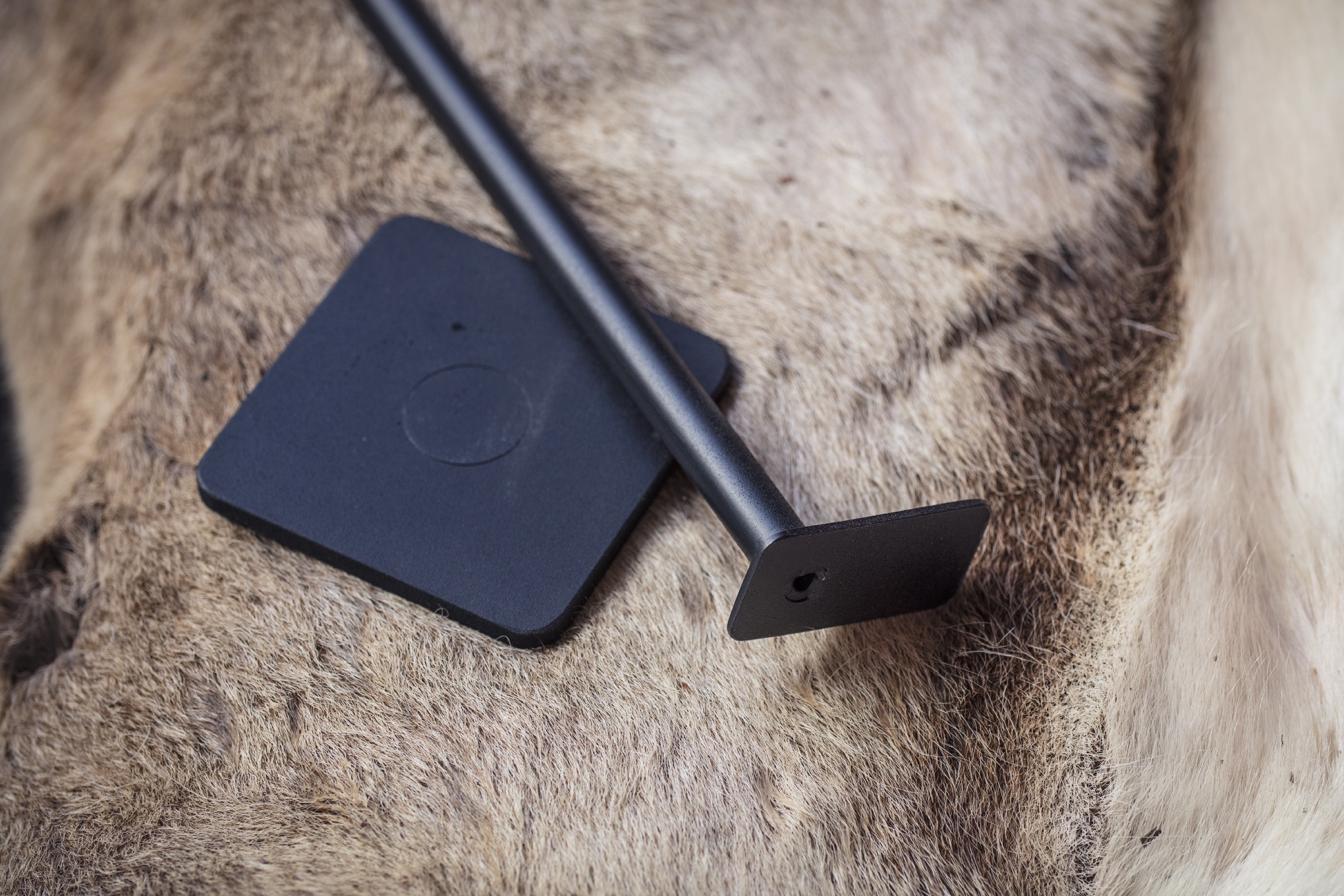 I dag er foten på Flamman smart utformet og kan brukes til å flytte vedkubber rundt i peisen eller spre kullet ut i kullgrillen. Bunnplaten er i tillegg magnetisk og har myke filtputer under, som sørger for at Flamman står stødig.