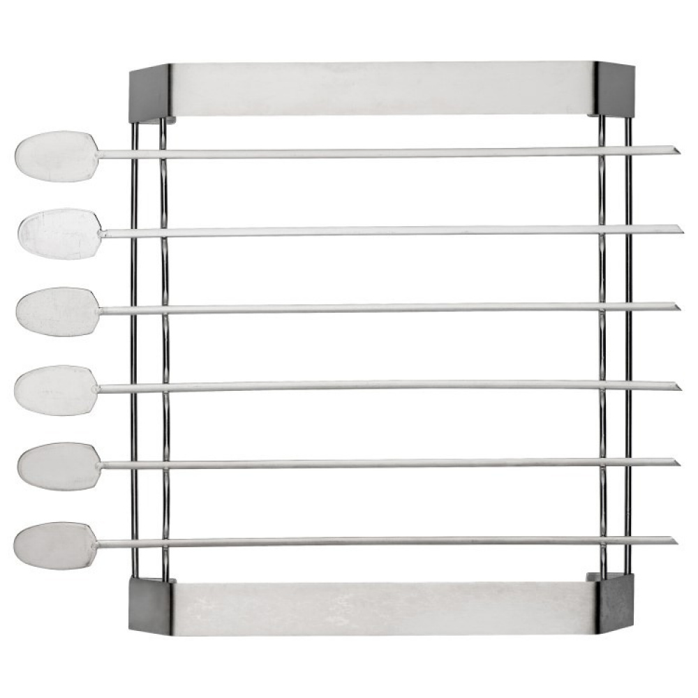 Det praktiske stativet er designet for å holde grillspydene på plass mens de grilles, og du kan enkelt snu dem med en gryteklut eller tang. Grillspydene er ca. 3,5 cm over kullene, noe som gir dem en perfekt tilberedning og en vakker grilloverflate.Kan vaskes i oppvaskmaskin