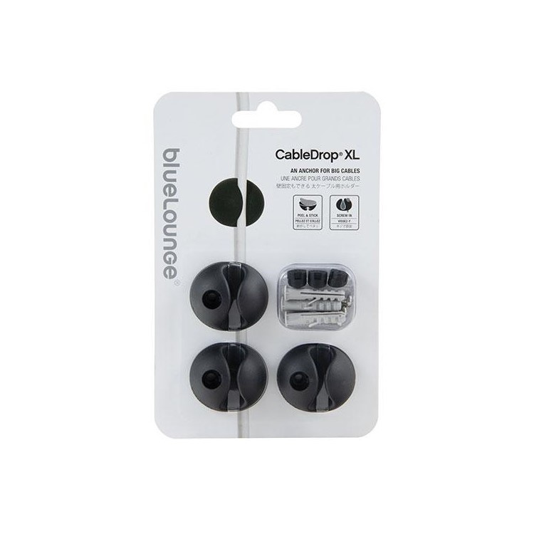 Kabelholderen fås i ulike størrelser. Velg mellom Mini, Original og XL. Mini og Original har dobbelheftende 3M-tape. XL har dobbeltheftende 3M-tape, plugg og skrue og små gummiknotter for å skjule skruehodet.