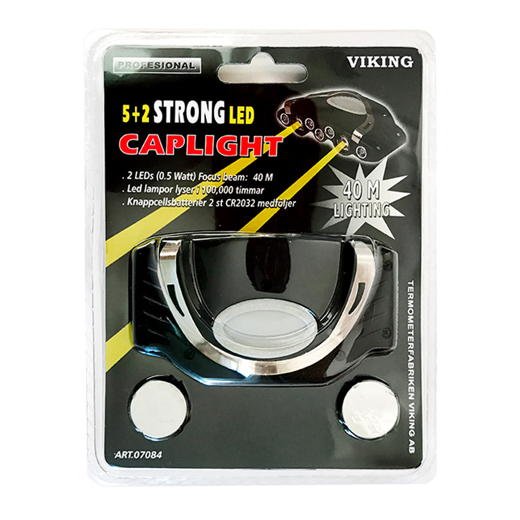 Kapslampen er en smart liten lampe til å feste på skjermen på kapsen, og som tåler regn og fuktighet. Perfekt når du trenger å ha hendene fri. Den har 5 vanlige LED-lamper og 2 ekstra sterke dioder som lyser med supersterkt skinn. Det er en liten på- og av-knapp på undersiden av lampen.Det går også an å stille inn hvor mange lamper som skal lyse samtidig.