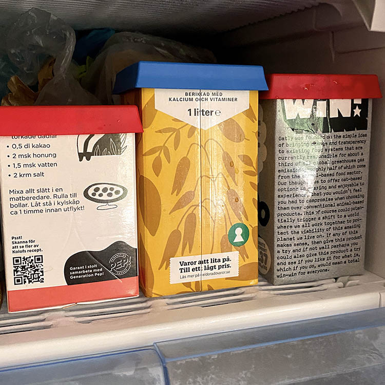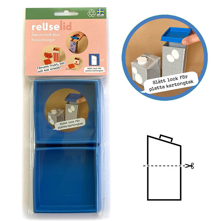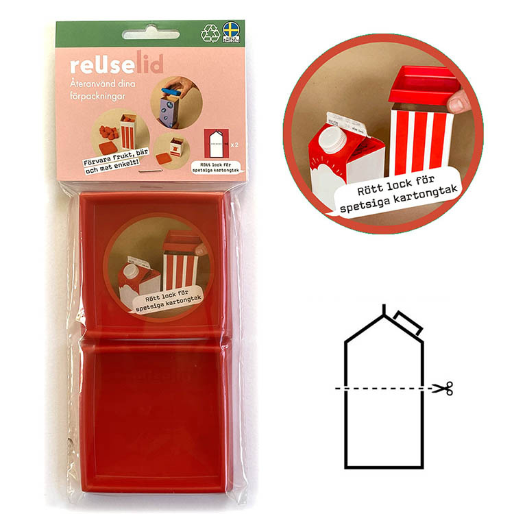 Forvandle din tomme melk- eller juicekartong til en smart matbeholder med reUselid. Vask ut kartongen når innholdet er slutt, klipp til den og klikk på reUselid - så får du en tettlukkende oppbevaringsbeholder. Locket tåler oppvaskmaskin og passer enliterspakker for eksempel melk, juice og havredrikk.