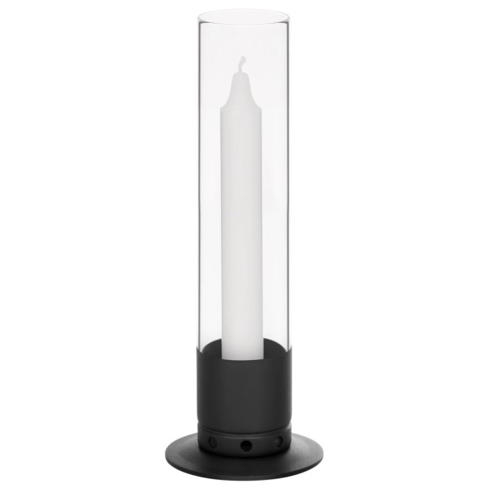 Lysestaken har en tung og stabil fot som holder lyset stående selv om det blåser. De smarte lufthullene i bunnen sørger for at lyset får oksygen, og gjør dessuten at lyset brenner uten å sote glasset.