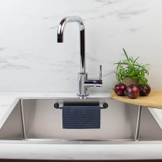 Plasser oppbevareren der den gjør mest nytte – på innsiden av et skap, på kjøleskapet eller i rengjøringsskapet for å henge håndklær og kjøkkenredskaper. Du kan også bruke den ved vasken for å holde kluter og svamper ute av veien, men lett tilgjengelig. Den sterke magneten gjør at oppbevareren sitter sikkert på plass, så lenge vekten ikke overstiger 225 gram.Spesifikasjoner