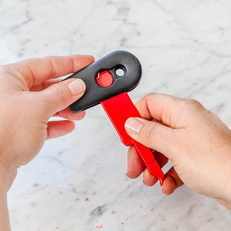 Ved behov, trekk håndtaket mot spisseren for å skape en ny, skarp kant. Multiskrapen tåler oppvaskmaskin.Spesifikasjoner