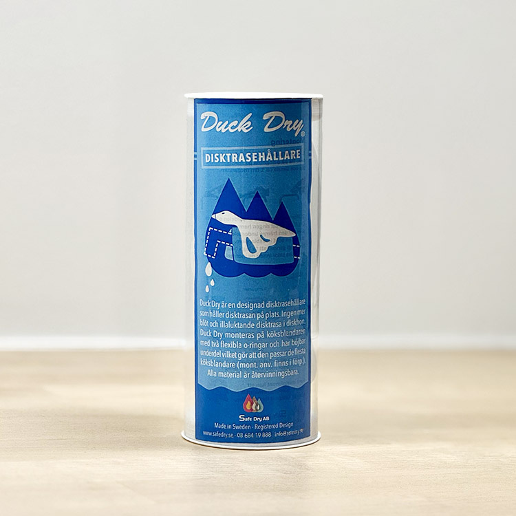 Duck Dry skiller seg ut med sin unike design i form av en liten and som holder oppvaskkluten på plass. Den lekne formen gjør det både enklere og hyggeligere å organisere på oppvaskbenken, samtidig som oppvaskkluten hviler luftig på holderen og holdes friskere lenger.Tilpasset ulike krantyper