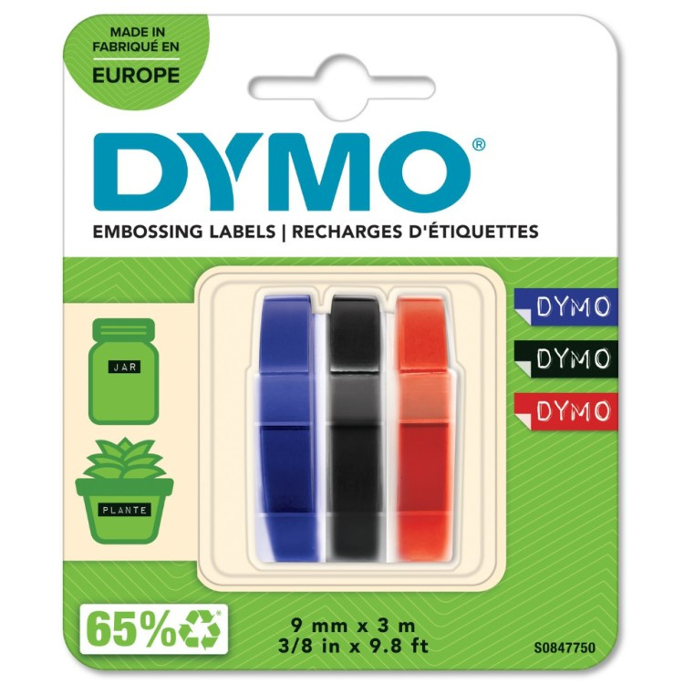 Med DYMO pregetape kan du merke tingene dine, organisere oppbevaringsbokser og lage etiketter til hyller og krukker. Pregetapen passer i merkemaskinen DYMO OMEGA og det kraftige klisteret på baksiden kan stort sett festes på alle harde og glatte overflater.