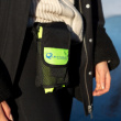Ved å feste sammen kantene på bøyen blir det enklere å kaste den ut eller sette den rundt deg selv. Redningsbøyen er enkel å ta med seg og kan dessuten bæres på hoften med det praktiske midjehylsteret. Midjehylsteret er designet slik at du fortsatt kan utløse bøyen mens den sitter i hylsteret. I midjehylsteret er det også en fløyte som kan brukes for å signalisere hvis du havner i nød.