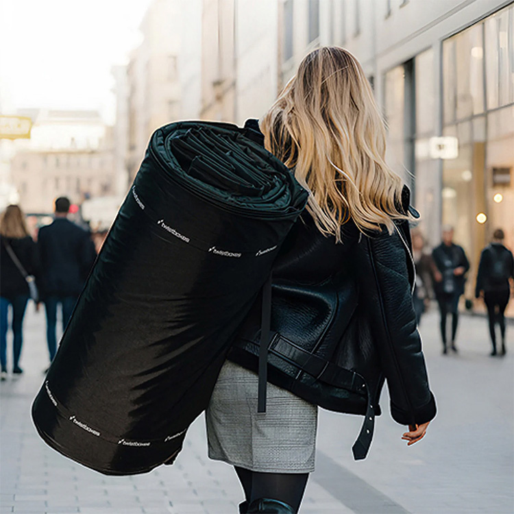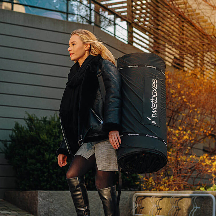 Når Twistboxes ikke brukes rulles den enkelt sammen til 81 × 30 cm. Det gjør lagringen enkel og fleksibel – hjemme, i bagasjerommet eller i lageret – uten at den tar opp unødvendig plass.Enkel å håndtere – også på egen hånd