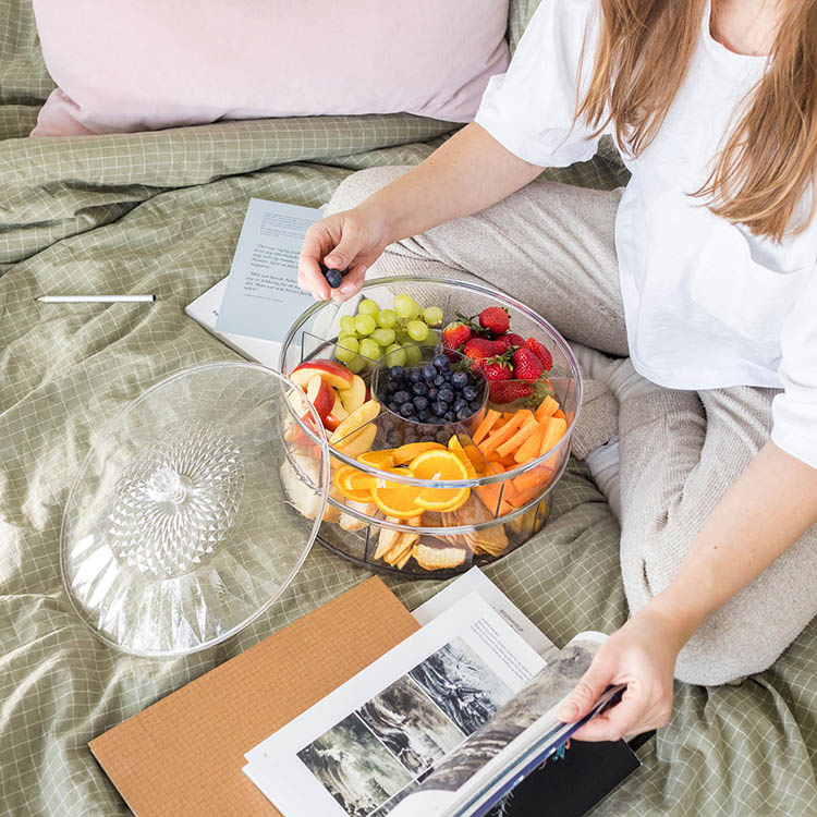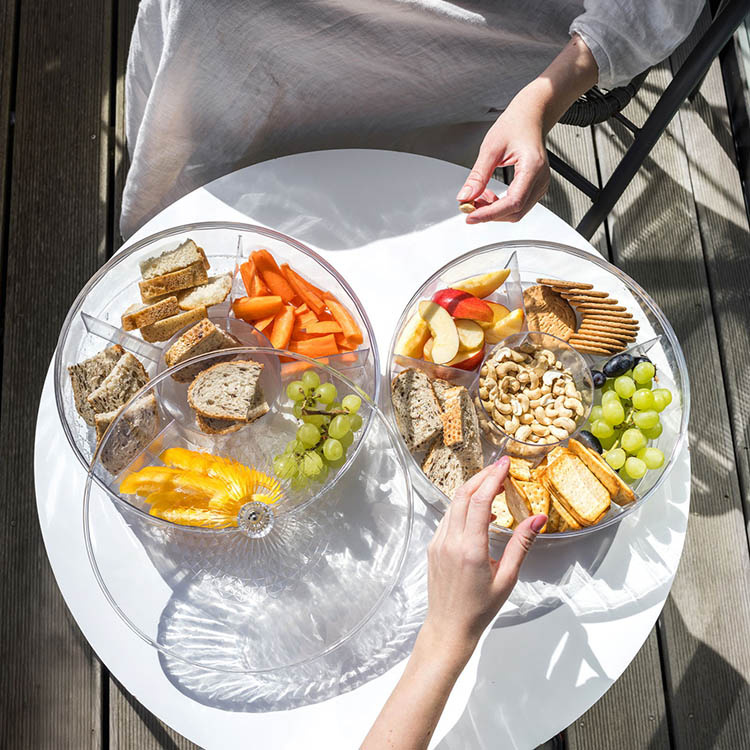 Smart serveringsfat som kombinerer praktisk funksjon og stilren utforming. Med flere separate rom, et transparent lokk og smidig dreifunksjon får du en gjennomtenkt og mangesidig serveringsløsning for alle anledninger.