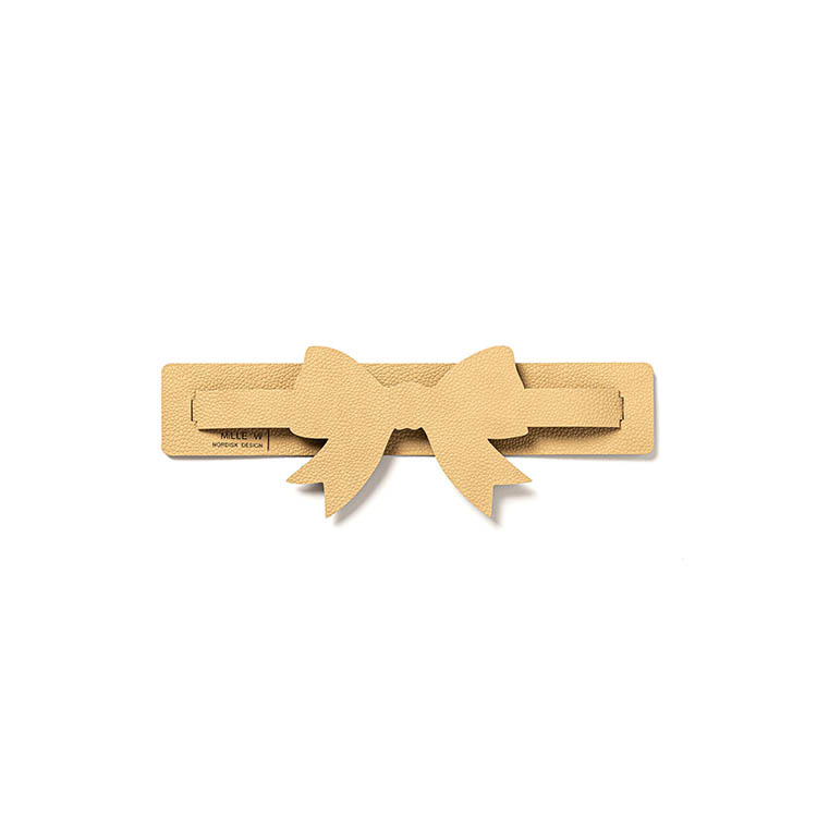Dekorativ servettholder fra MiLLE W Nordisk Design i resirkulert lær med en dekorativ rosett. Den holder serviettene sikkert på plass samtidig som den tilfører et harmonisk og gjennomtenkt uttrykk til dekket. Produsert i Sverige i resirkulert lær som med tiden utvikler en vakker patina.