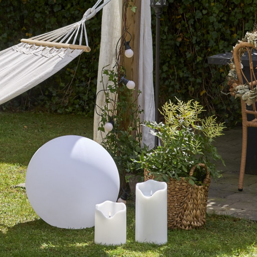 Stort og vakkert kubbelys med et varmt og hvitt lys, som du kan plassere i uteområdet, på balkongen eller i hagen. Det brede kubbelyset har en fin og realistisk flamme som flimrer. I tillegg er det et annet LED-lys inne i kubbelyset, som lyser gjennom veggene med et jevnt lys.