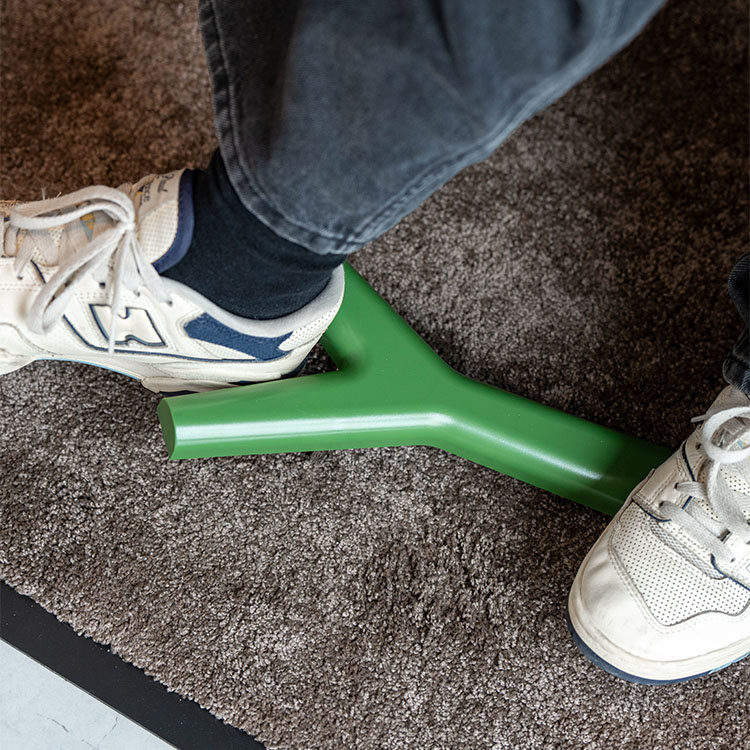Støvelknekt med innebygd skohorn som gjør det enklere å ta skoene av og på. Støvelknekten er praktisk å ha i nærheten i gangen, og den kan henges opp på veggen når den ikke brukes.