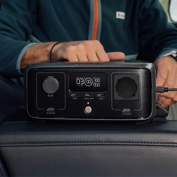 En powerstation er en større og mer kapabel versjon av en powerbank, designet for å lade og drive et bredere spekter av elektriske enheter og apparater. Ecoflow River 3 er en kraftig strømstasjon med en kapasitet på 245 Wh, slik at du alltid har tilgang til strøm når du trenger det som mest. EcoFlow er utstyrt med en AC-uttak (for tilkobling), en DC-uttak, to USB-A-uttak og en USB-C-uttak.Alltid forberedt