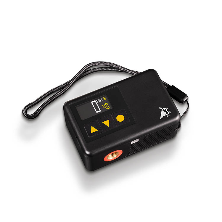 Det innebygde litiumionbatteriet (2x500 mAh) rekker til å pumpe opp til syv dekk på en enkelt lading. Batteriet lades via den medfølgende USB-C-kabelen (5V/2A).Kompatibel med vanlige ventiler