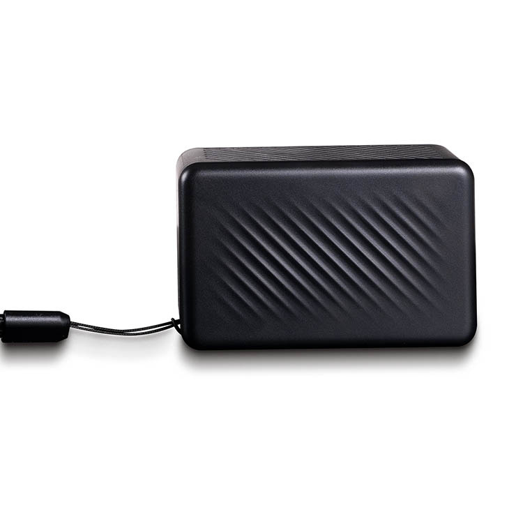 Takket være sine kompakte mål om 71,5 x 45 x 32 mm er Airbird P1 lett å bære med seg. Den veier kun 118 gram og får uten problem plass i jakken pocketen, sadelvesken eller ryggsekken. Bærerem og oppbevaringspose medfølger i forpakningen.Ladbart batteri med lang drifttid