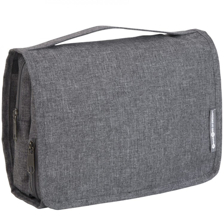 Toalettmappen er laget av slitesterk polyester og kan ved behov vaskes i vaskemaskinen på 30 grader.