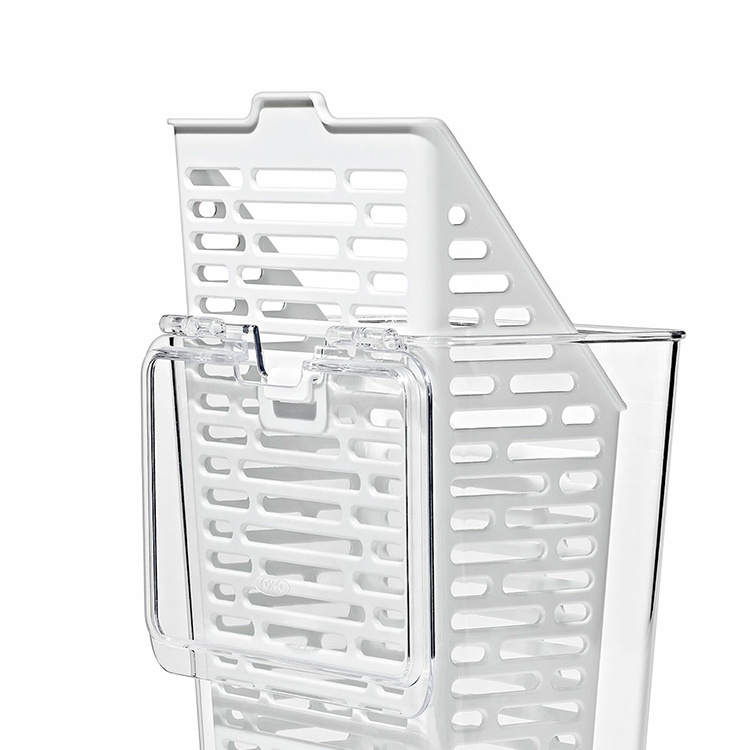 Urtebeholderens innerkurv er utformet med et ventilasjonsmønster som gir god luftcirkulasjon. Det bidrar til å holde urtene friske ved å redusere risikoen for kondens og mugg. Kurven kan enkelt løftes ut og henges opp, noe som gjør det smidig å komme til urtene når du lager mat.Plassbesparende design for kjøleskapet
