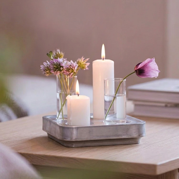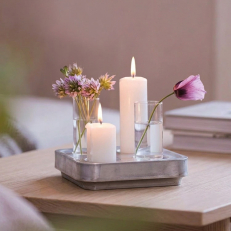 Ved å kombinere lys og vaser transformeres Stumpastaken fra en klassisk lysestake til et fleksibelt interiørelement. Bytt ut blomster og lys etter årstid, fargetema eller høytid. Om våren passer spirende kvister, om sommeren små engblomster, og om vinteren kan du tilføye granbar eller røde bær.Personlig dekorasjon for alle anledninger